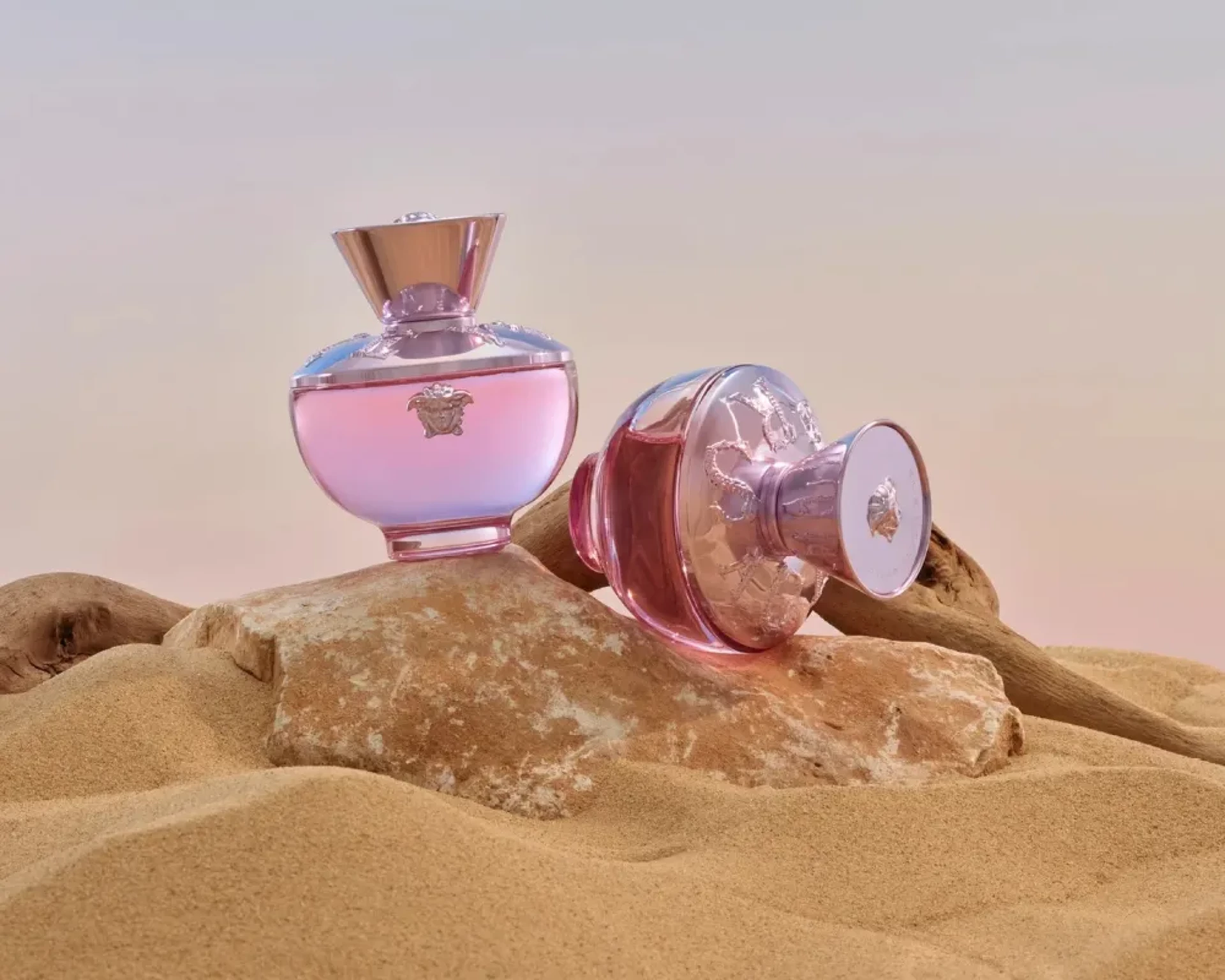 Vizuelni identitet mirisa jednako je upečatljiv kao i njegova kompozicija. Bočica, inspirirana antičkom amforom, referira se na grčku kulturu i mitologiju – elemente koji su duboko utkani u DNK kuće Versace. Nježna ružičasta nijansa stakla evocira romantičnu ženstvenost, dok metalik detalji i aluminijski čep s reljefnom glavom Meduze naglašavaju luksuzni karakter. Na poleđini bočice, naziv brenda ispisan je u prepoznatljivom baroknom stilu, kao diskretan, ali snažan potpis.