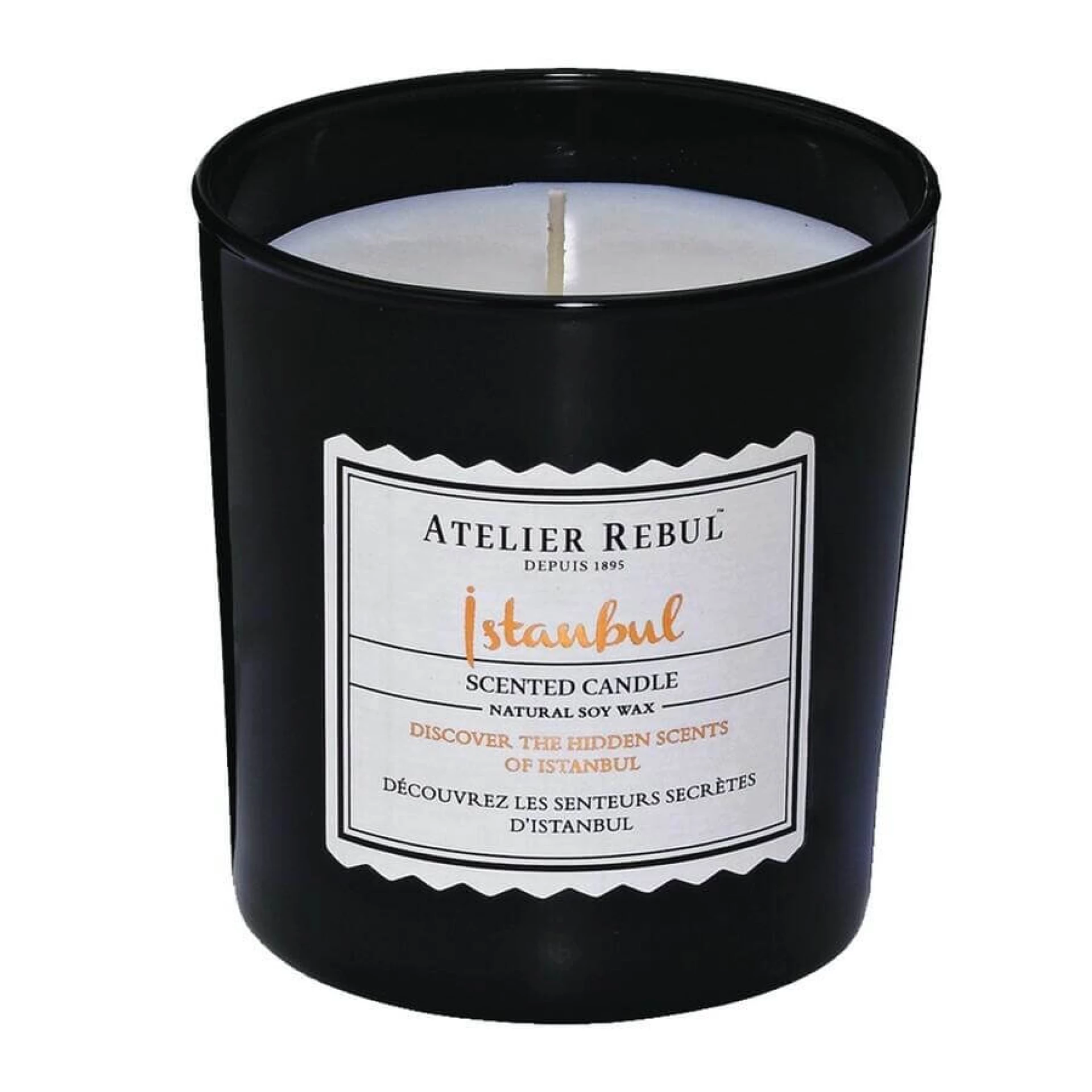 Mirisne svijeće Atelier Rebul izrađene su od kvalitetnog biljnog suncokretovog voska (60%) i parafina (40%). Biljni vosak je organska, zdrava i prirodna alternativa sintetičkom vosku, pa mirisne svijeće Atelier Rebul traju čak i dulje od svijeća napravljenih isključivo od parafina. Njihov pamučni fitilj osigurava dugo i lijepo gorenje bez dima. Ugodne arome stvaraju opuštajući ambijent i smanjuju stres, a mirisna svijeća ispušta miris u manjem prostoru i kad je ugašena. Vrijeme gorenja mirisne svijeće Istanbul je oko 45 sati.