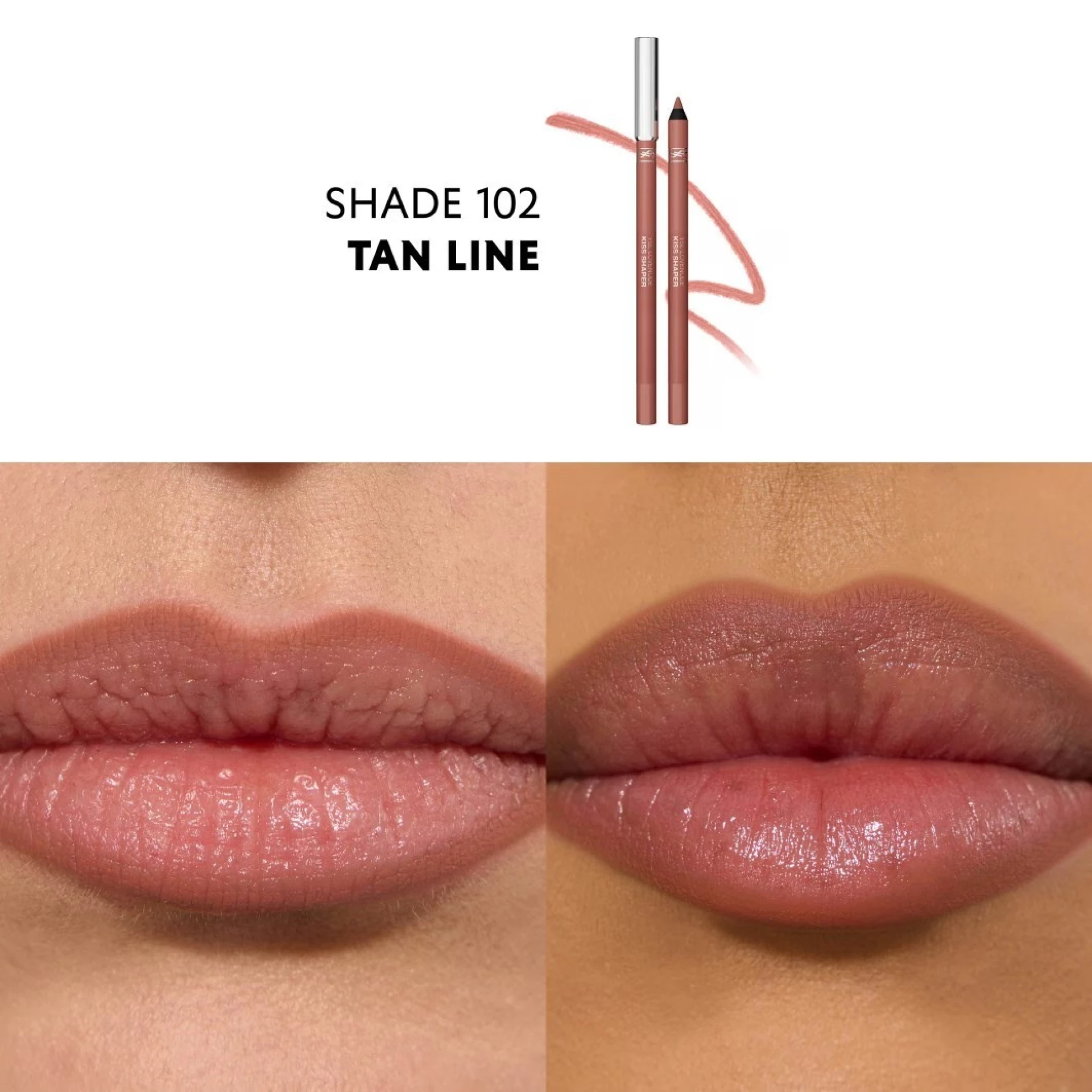 Lovenude Kiss Shaper Lip Liner brenda YSL Beauté je kremasta olovka za konture koju odlikuje plemeniti mat finiš. Omogućava preciznost bez napora te oblikuje i naglašava usne na prirodan način. Obogaćena sjemenkama crnog kima i ekstraktom ulja kafe, ova olovka za usne njeguje usne i ostavlja prijatan osjećaj na koži. Nudi do 12 sati besprijekorne postojanosti i osigurava "soft-focus" efekat koji usne vizuelno čini punijim. Ovaj makeup klasik može se koristiti svestrano: samostalno za prirodan nude izgled ili u kombinaciji sa ružem za usne. Olovka je dostupna u mnogim nude nijansama i tako harmonira sa svakim tonom kože.