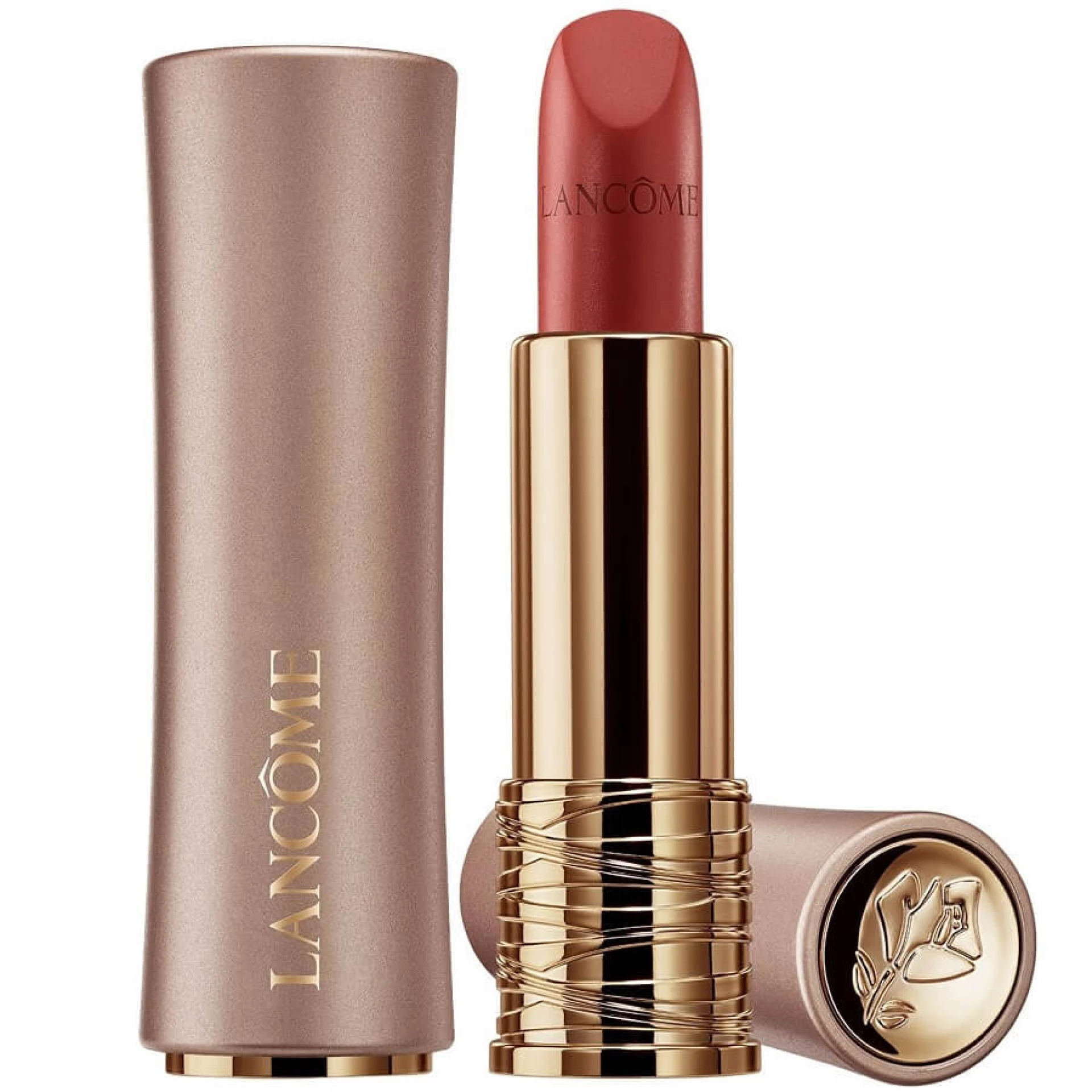 Lancôme L'Absolu Rouge Intimatte nježan je ruž za usne s formulom koja se iznimno lako nanosi. Ovaj mat ruž, obogaćen je sastojcima koji njeguju i hidratiziraju Vaše usne. Lancôme L'Absolu Rouge Intimatte nježan je mat ruž za usne ugodne formule koja se lako nanosi na usne. Uklopljen je u novo luksuzno pakiranje ružičasto zlatne boje uz prepoznatljivi maleni struk L'Absolu Rougea i kultni zlatni prsten. NJEŽAN MAT LOOK LAGANA TEKSTURA DUGOTRAJNA UDOBNOST I DO 12 SATI L'Absolu Rouge Intimatte nježni je mat ruž prožet njegujućim ekstraktima ruža i ceramidima za dugotrajnu udobnost na Vašim usnama. Neka se nježna formula L’Absolu Rouge Intimatte stopi u s Vašim usnama i da im novu dimenziju. Uz L'Absolu Rouge Intimatte dodajte boje Vašoj svakodnevici, ali i svakoj posebnoj prigodi.