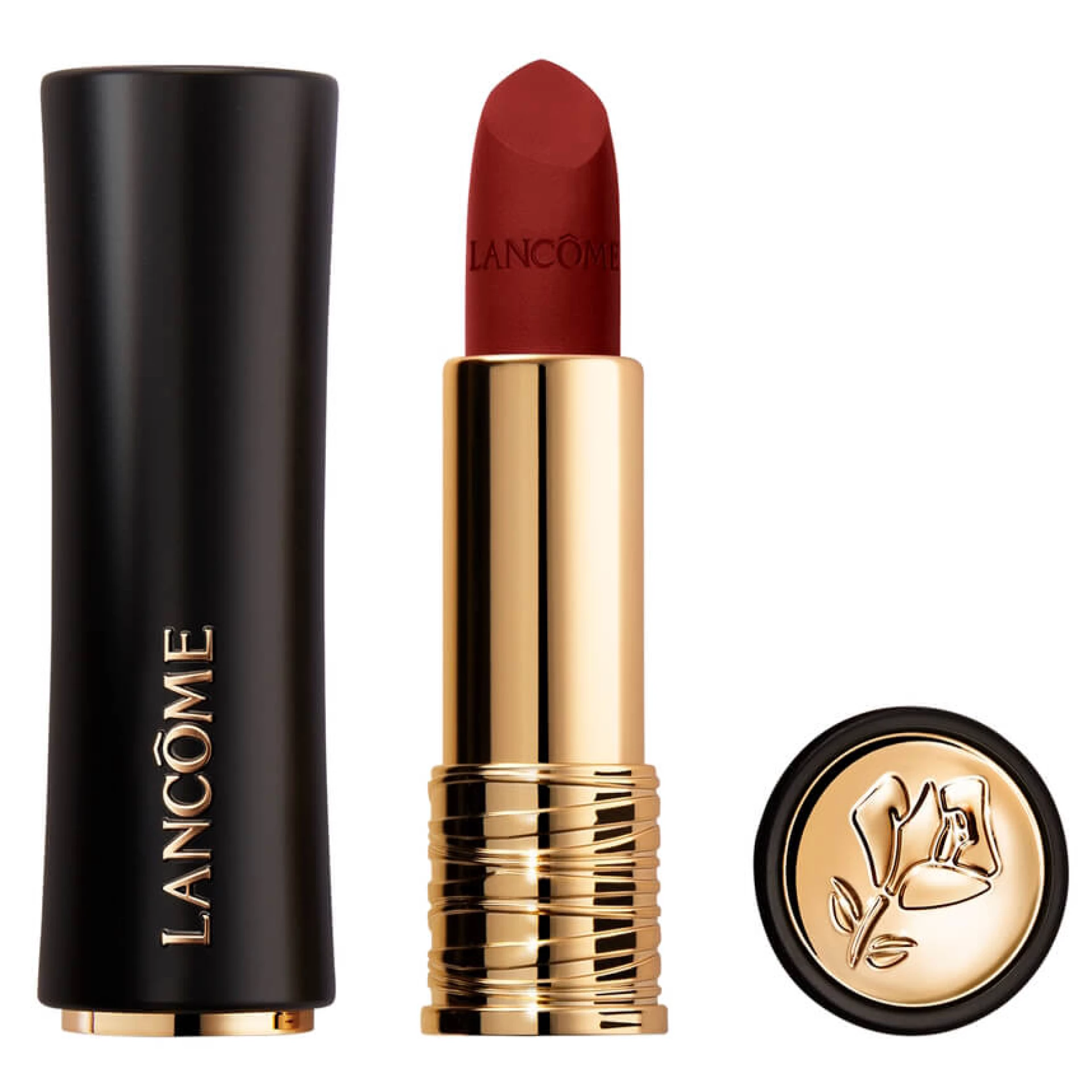 L'Absolu Rouge Drama Matte je Lancômeov najudobniji ruž za usne do sada. Pruža besprijekornu boju zahvaljujući čistim pigmentima za dugotrajnu udobnost. Ima puderasti mat završetak za kojim žudite. U novom luksuznom pakiranju visoke kvalitete, proizvedenom u Francuskoj, otkriva prepoznatljivi maleni struk i kultni zlatni prsten ikonskog pakiranja ruža. Definirajte svoje usne svakim potezom zahvaljujući novom obliku ruža, koji je dizajniran poput latice, za ultra preciznu primjenu. — PUDERASTI MAT ZAVRŠETAK — TRAJNA UDOBNOST — INTENZIVNA BOJA Dramatičan učinak bez drame suhih usana. Kultna formula mat ruža za usne sada je obogaćena čistim pigmentima za intenzivnu boju i ekstraktima ruže za trajnu luksuznu udobnost. Dostupan u 15 nijansi, uklopljenih u novo luksuzno pakiranje visoke kvalitete: proizvedeno u Francuskoj. Intenzivna boja i luksuzna njega, kompromis nije potreban. Intenzitet boje susreće udobnost na vašim usnama. Nema suhih usana. Novi elegantni ritual: klik kultnog pečata ruže otkriva kultni zlatni prsten. Osjetite njegovo novo senzualno pakiranje.