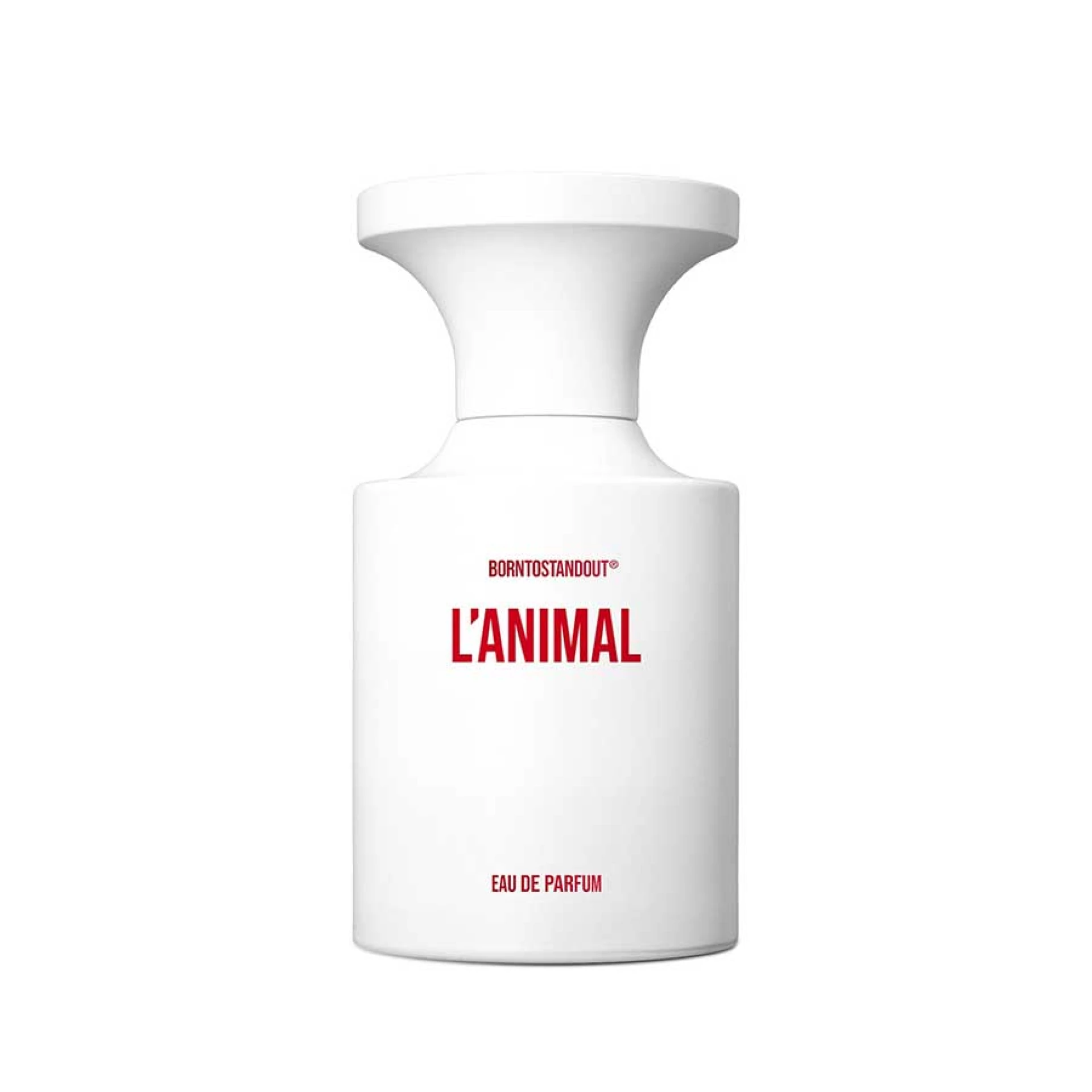 Oslobađajući vaše unutrašnje želje, L'Animal Eau De Parfum brenda BORNTOSTANDOUT usvaja provokativan i iskonski (primalni) mirisni profil. Poput baršunaste milovanja, miris se otvara notama bogatog ruma, muškatnog oraščića i kremastog badema koje nježno dodiruju kožu. Akcenti mekane brušene kože (suede) kombinovani su s heliotropom za svjež, zelenkasti dodir, prije nego što užarena erupcija guaiac drveta i sandalovine usidri bazu. Na kraju, nijanse zlatnog meda i senzualne vanilije rastu u intenzitetu dok se parfemska voda zagrijava na vašim pulsnim tačkama.