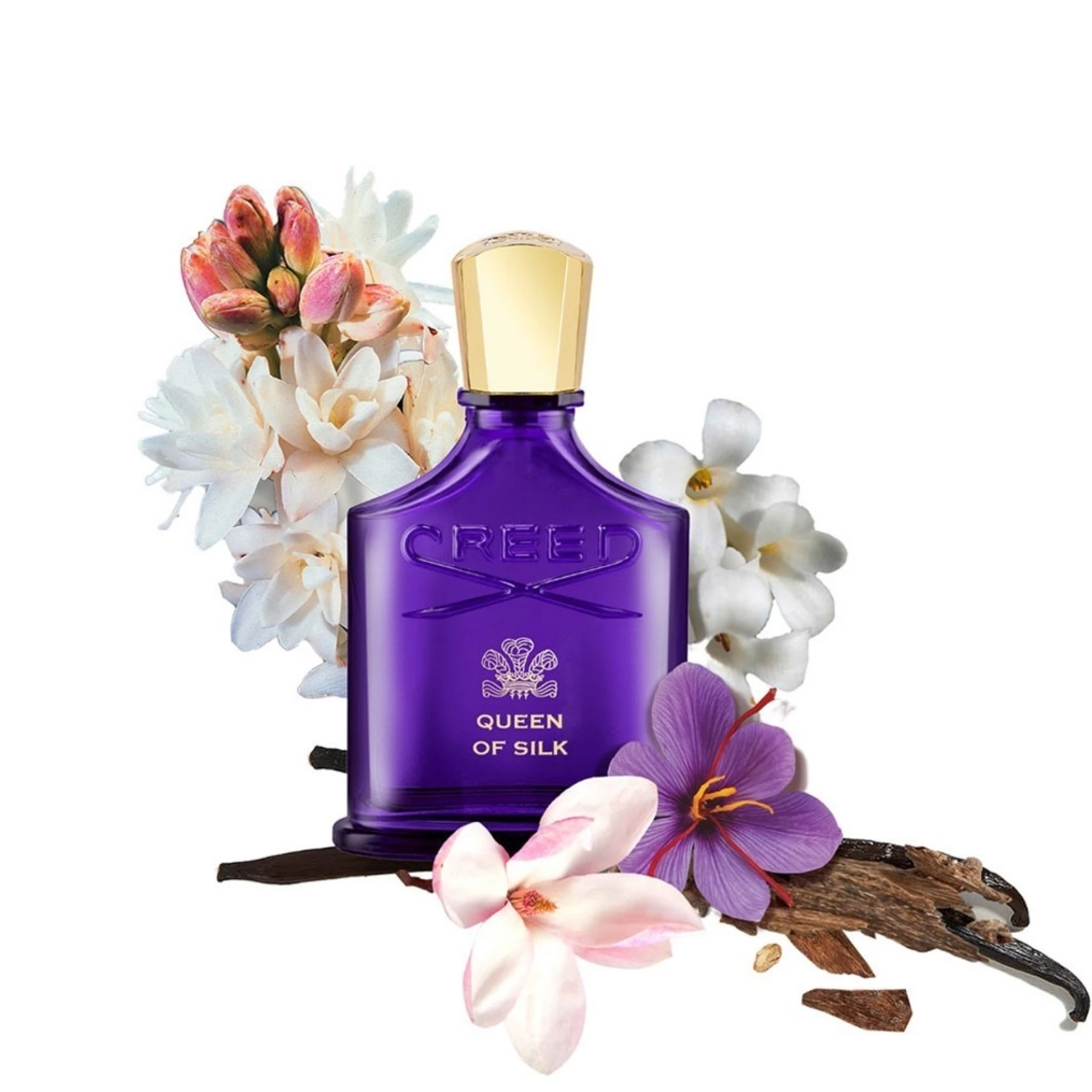 Iskusite hipnotičnu privlačnost Queen of Silk parfemske vode, cvjetno-ambernog mirisa za žene koji je raskošan poput same svile. Ovaj miris majstorski dočarava luksuzni sjaj i nježan dodir ove najdragocjenije tkanine. Kao tapiserija istkana od dragocjenih sastojaka, ova očaravajuća kreacija priziva daleke zemlje kojima je ovaj cijenjeni materijal nekada putovao. Božanstveni kineski osmantus, dekadentna tuberoza i eterični javanski pačuli nježno obavijaju kožu, dok bogato drveće i raskošna madagaskarska vanilija ostavljaju dugotrajan trag senzualnosti, suđen da očara svakoga ko ga osjeti.