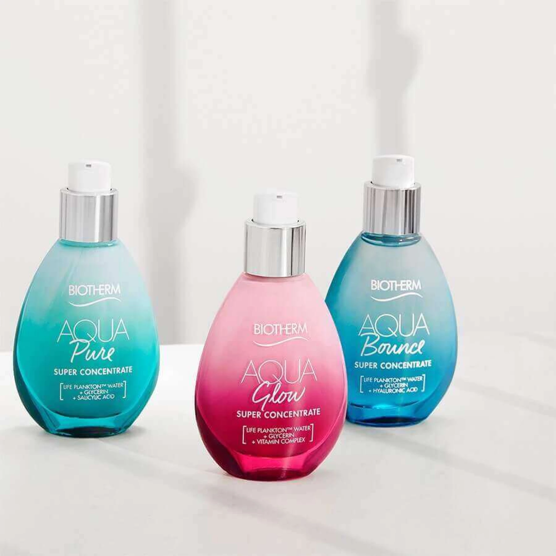 Aqua Glow lagana je hidratantna emulzija koja pospješuje sjaj i intenzivno djeluje na kožu bez sjaja, neujednačeni ten kože i dehidriranu kožu tako da pojačava prirodnu sposobnost kože da stvara sjaj čime kožu čini zdravijom i sjajnijom. Obogaćen Biothermovim ekskluzivnim sastojkom vode sa sastojkom Life Plankton™ te vitaminskim kompleksom, proizvod AQUA GLOW pojačava prirodnu sposobnost kože da stvara sjaj. Trenutno te iz dana u dan poboljšava i usavršava neujednačenost kože te pospješuje prirodni sjaj kože.