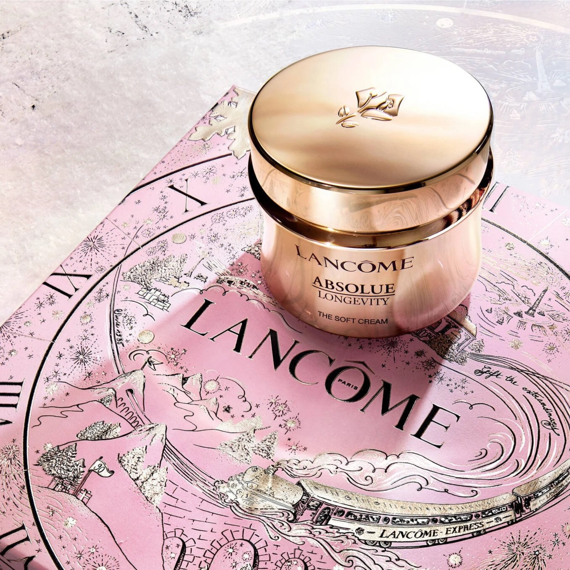 Ove praznične sezone krenite na nesvakidašnje putovanje od Pariza do sreće i proslavite 90 godina magije. Lancôme predstavlja posebnu kolekciju poklona koju je dizajnirala francuska umjetnica Safia Ouares, u prepoznatljivoj Lancôme ružičastoj boji. Svaka kutija otkriva po jedan „beauty dragulj“ koji će učiniti da blistate tokom cijele praznične sezone. Ovaj poklon set sadrži: • ABSOLUE LONGEVITY SOFT CREAM 60ML (Lagana krema za dugovječnost kože) • ABSOLUE THE EYE CREAM 5ML (Krema za područje oko očiju) • ABSOLUE THE SERUM 5ML (Serum za lice) • ABSOLUE RICH CREAM 15ML (Bogata krema za lice)