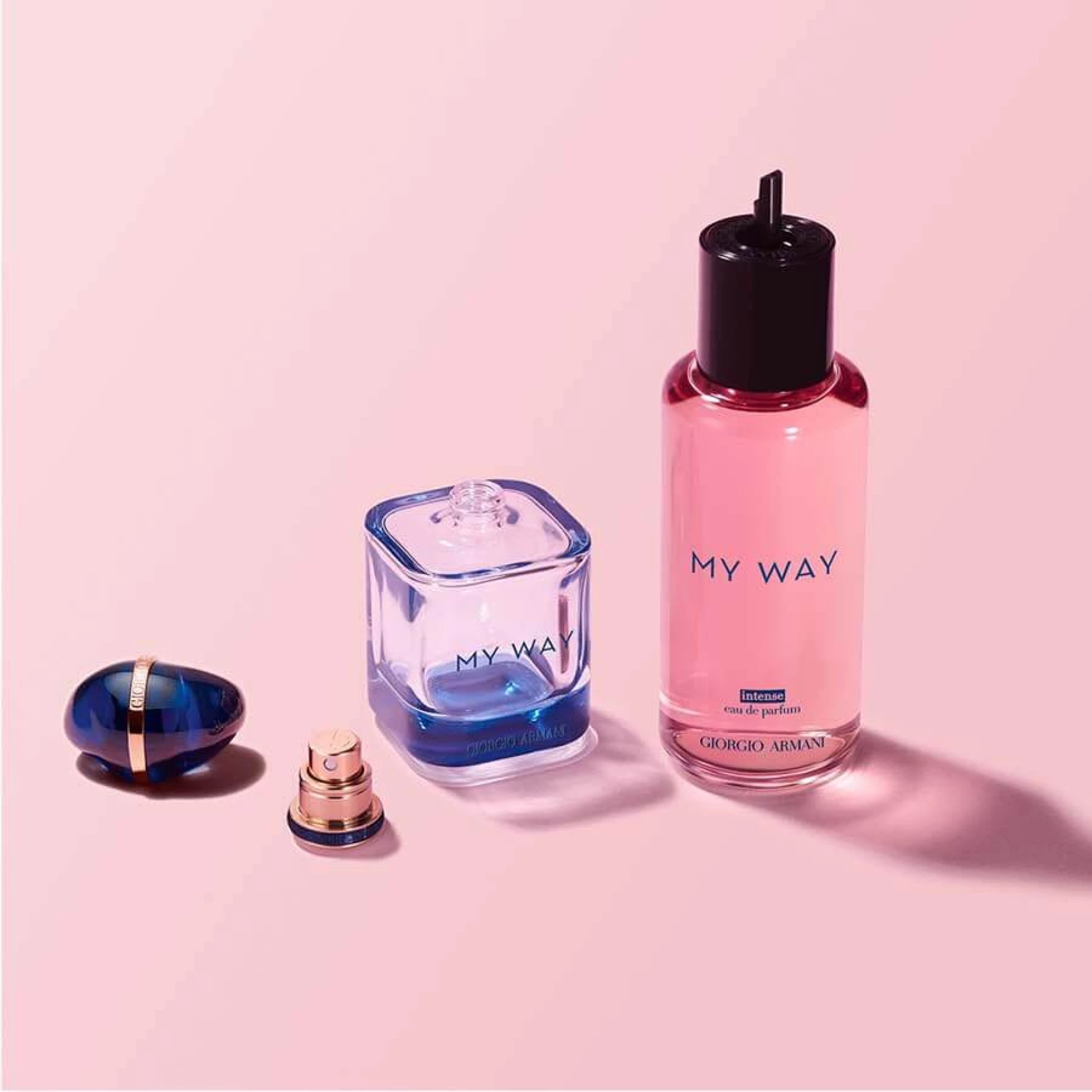 Otkrijte My Way Intense, novi miris za žene kuće Giorgio Armani. Blistavi buket bijelog cvijeća na neodoljivom, drvenastom mirisnom tragu sandalovine u dragocjenoj bočici. My Way Intense poziva vas u novu avanturu samootkrića, značajnih susreta i novih iskustava. Pojačana doza bijelog cvijeća na drvenastom mirisnom tragu sačinjenom od odgovorno dobivenih sastojaka. Miris se otvara uz svježe note egipatskog cvijeta naranče. Novo, intenzivno srce mirisa čini tuberoza iz Indije, koja otkriva nježni, baršunasti cvjetni potpis. U samoj bazi mirisa nalazi se sandalovina iz Nove Kaledonije koja se spaja sa senzualnom vanilijom s Madagaskara. Čep u plavoj i zlatnoj boji poput dragocjenog kamena simbolizira talisman koji objedinjuje iznimna iskustva. Intenzivnost tih trenutaka utkana je u čep bočice, dok je staklo obojeno prekrasnom, dubokom plavom bojom. My Way dizajniran je tako da potraje. Inovativni sistem ponovnog punjenja omogućava laku nadopunu mirisa kod kuće. Osim sistema ponovnog punjenja, My Way također ima sastojke dobivene na odgovoran način, a zalaže se i za očuvanje šuma kroz posebne programe, kako bi se ostvarila ugljična neutralnost. I AM WHAT I LIVE.