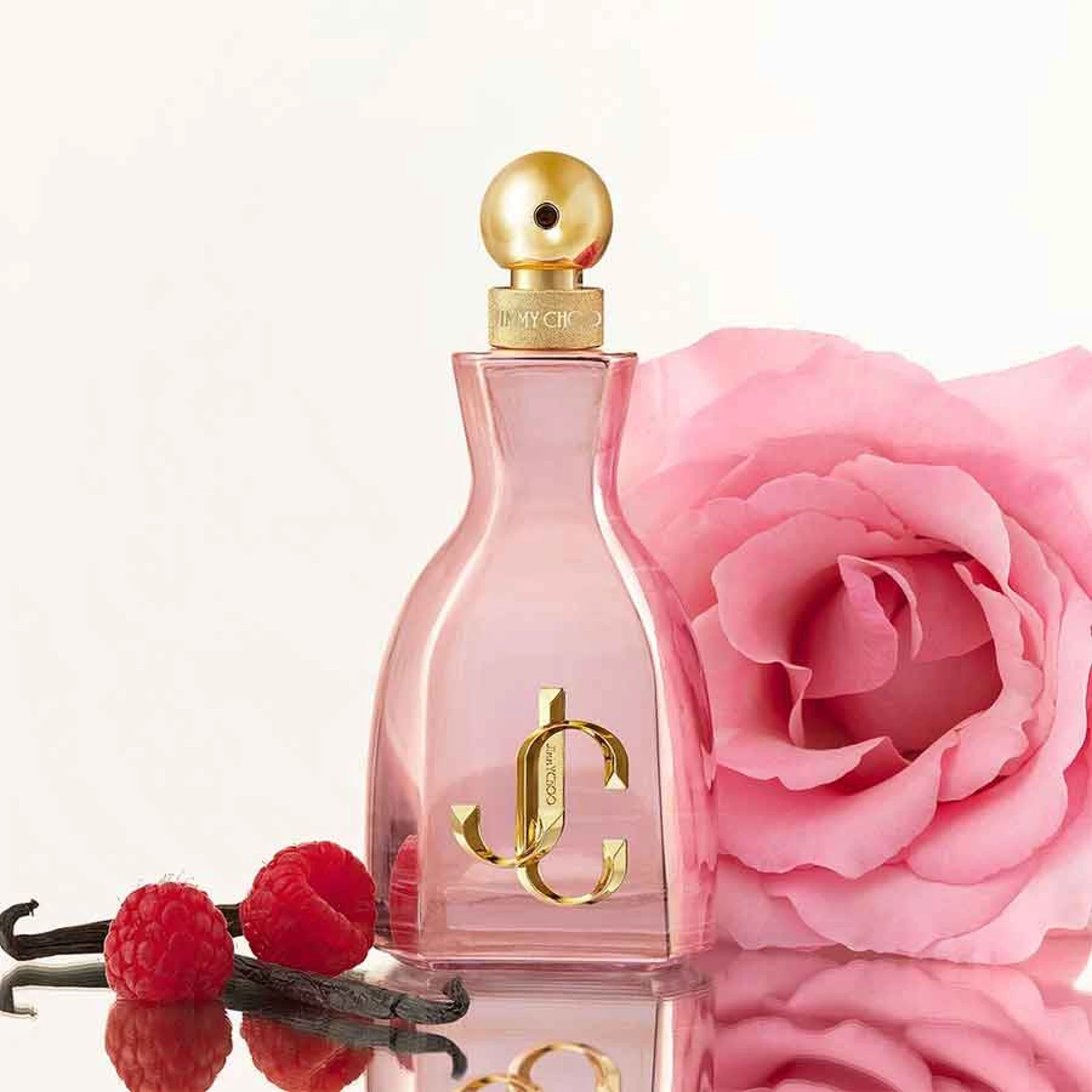 I Want Choo With Love je voćni, cvjetni i jantarni eau de parfum koji slavi ljubav, prijateljstvo i samopouzdanje. Ova blistava i odvažna nova kreacija obogaćuje I Want Choo liniju izrazito modernim potpisom ružičaste vanilije. Olfaktivno otvaranje počinje svježim i pjenušavim notama maline, cvijeta narandže i esencije mandarine, da bi zatim otkrilo vibrantno srce koje spaja ružu, hibiskus i infuziju frezije. Zavodljiv, ali profinjen trag mirisa otkriva kremaste bazne note vanilije, sandalovine i mošusa, stvarajući sofisticiran miris koji utjelovljuje odlučnu ženstvenost i prepoznatljivu hrabrost brenda Jimmy Choo.